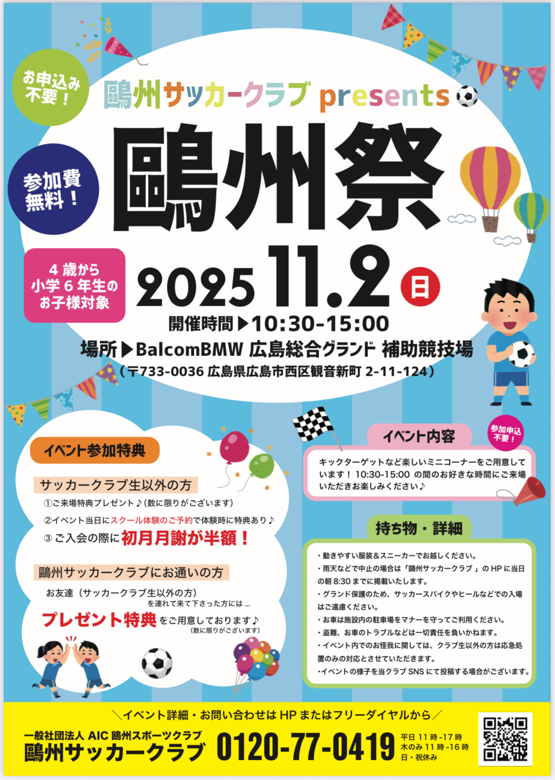 サッカー未経験の方でも大歓迎!!是非ご家族やお友だちと一緒にご参加ください♪(^^♪